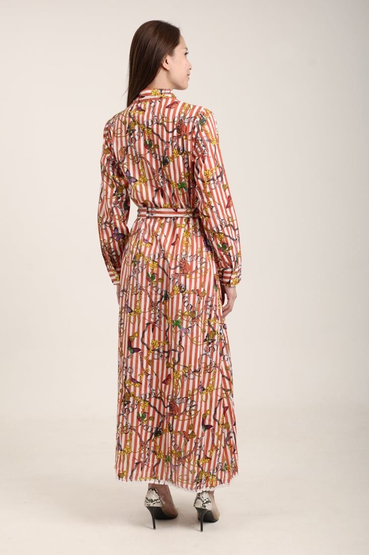 Maxi Sơ Mi Cotton Cao Cấp Luna Llena, chất cotton mềm mại cao cấp. Nền vải sọc ánh kim tinh tế. Màu sắc nhẹ nhàng, trang nhã. Có lớp lót. Dài 128cm (45x128) Phù