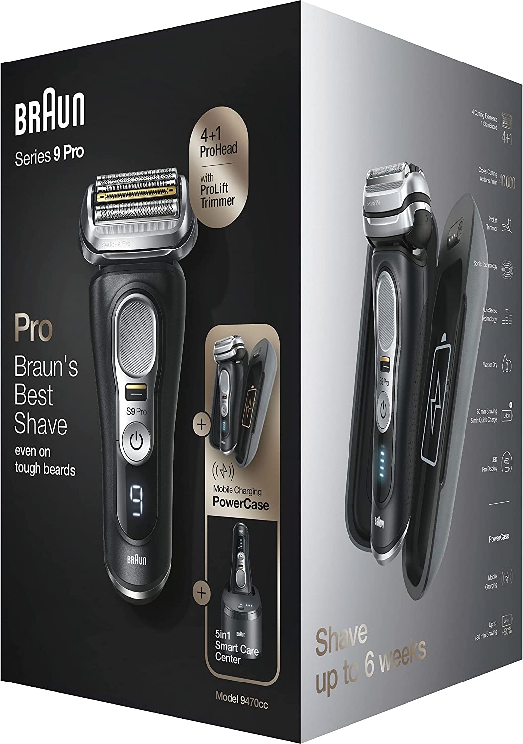 - Máy cạo râu điện Braun series 9 pro bao gồm: – Trạm vệ sinh 1 x 5 trong 1 (Trung tâm SmartCare). – 1 hộp nước vệ sinh dao cạo. – 1 bao da du lịch. – 1 bàn chải làm sạch. – 1 cung cấp điện. – 1 Hộp sạc dự phòng. – 1 hướng dẫn sử dụng (ngôn ngữ tiếng Anh) ĐẶC ĐIỂM NỔI BẬT: – CẠO RÂU TỐT NHẤT CỦA BRAUN -Người chiến thắng trong cuộc thử nghiệm tại Stiftung Warentest với tổng điểm là 1,6 (10/2021). Series 9 Pro là máy cạo râu điện hiệu quả nhất của Braun, nay còn tốt hơn với đầu Pro mới. – Hiệu quả và nhẹ nhàng cho dù đó là râu 1, 3 hay 7 ngày, máy cạo râu điện dành cho nam giới này có tính năng nâng Tông đơ ProLift độc đáo và cắt những sợi tóc khó tiếp cận – Hiệu quả hơn (so với Braun Series 9 trước đây) và nhẹ nhàng: tông đơ ProLift cải tiến và công nghệ Braun Sonic độc đáo giúp nhanh hơn tới 10% (so với Braun Series 9 trước đó) đồng thời nhẹ nhàng trên da – Thời lượng pin dài hơn 50% với PowerCase đầu tiên trên thế giới: với hộp sạc máy cạo râu di động này, bạn có thể sạc máy cạo râu của mình mọi lúc, mọi nơi. Pin lithium-ion mạnh mẽ tích hợp sạc dao cạo của bạn trong tối đa 6 tuần – Sản xuất tại Đức: dao cạo điện này không thấm nước 100% và có thể được sử dụng với bọt, gel hoặc ngay cả khi tắm. – Với trạm làm sạch 5 trong 1 Braun (Trung tâm SmartCare): Cho dao cạo râu sạch sẽ mỗi ngày – chỉ bằng một nút bấm. – Được đánh giá 5/5 sao tại thị trường Đức.