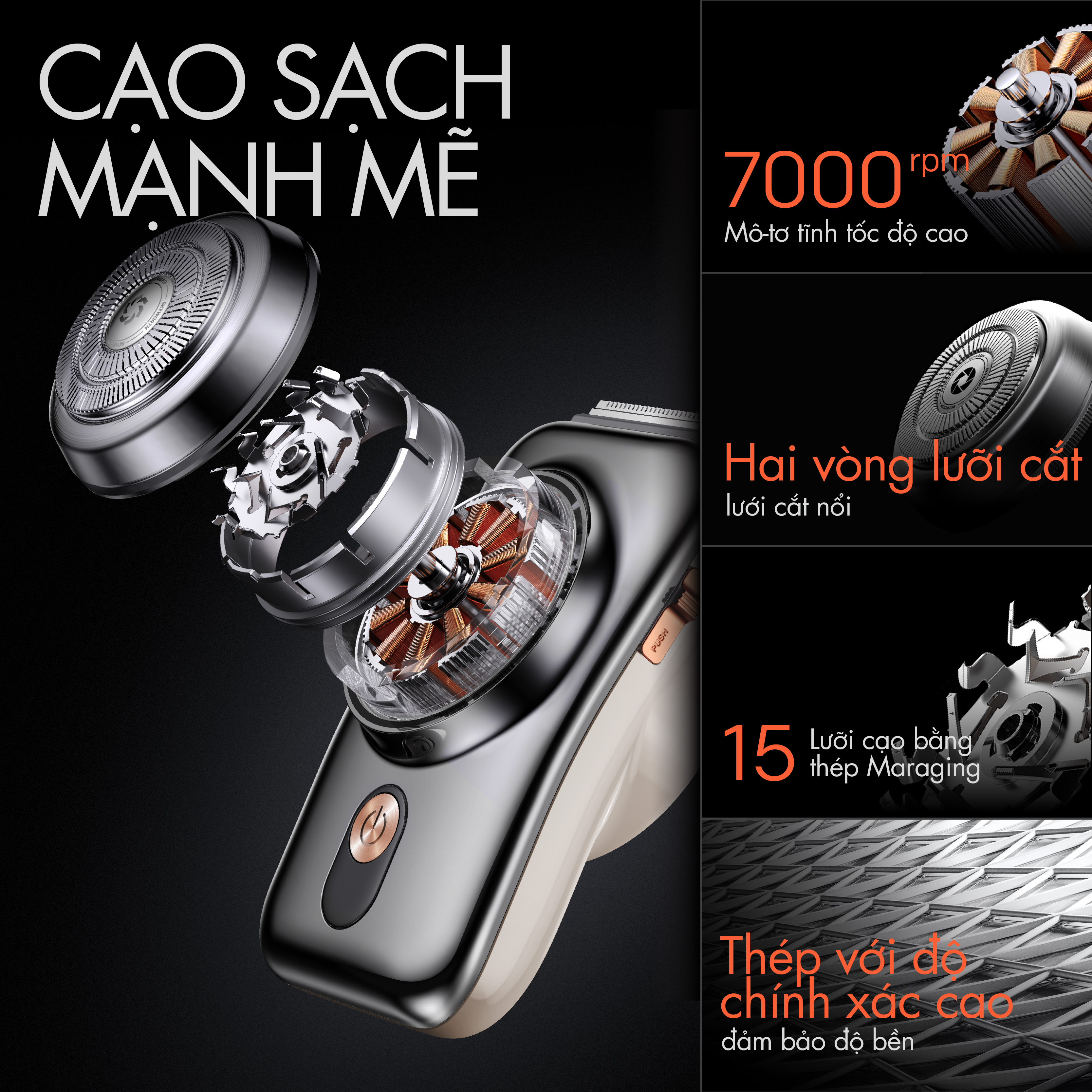 ĐẶC ĐIỂM NỔI BẬT 72 lưỡi dao SteelPrecision cho kết quả cạo nhẵn và êm  Công nghệ nhận diện râu SkinIQ hỗ trợ cách cạo râu hiệu quả  Giảm 30% kích ứng da  Đầu cạo