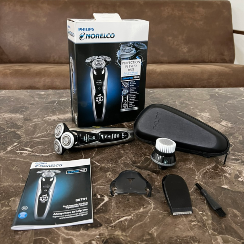 Philips là thương hiệu thuộc Tập đoàn Điện tử Hoàng gia Philips được thành lập năm 1891 tại Amsterdam - Hà Lan. Đây là công ty hàng đầu thế giới chuyên sản xuất và phân phối các sản phẩm thuộc ngành chăm sóc y tế, chiếu sáng, đặc biệt là ngành điện gia dụng và điện tử tiêu dùng, với hệ thống cửa hàng, nhà máy tại hơn 150 quốc gia cùng hàng trăm ngàn lao động. - Với mục tiêu cải thiện cuộc sống con người, Philips không ngừng nỗ lực và sáng tạo nhằm đưa công nghệ và kỹ thuật tối tân và tiết kiệm năng lượng vào những dòng sản phẩm đa dạng như: bàn ủi, máy cạo râu, máy ép trái cây, máy hấp, máy pha cà phê, bình siêu tốc… Các sản phẩm của Philips đang được tiêu thụ rộng rãi tại Việt Nam, có mặt tại 90% các cửa hàng điện gia dụng và dễ dàng tìm thấy ở tất cả các siêu thị lớn trên cả nước. Qua nhiều năm đứng vững trên thị trường, đến nay, Philips hiện là lựa chọn yêu thích của người tiêu dùng Việt. Máy cạo râu Philips Norelco S9731 thuộc Serial 9800 có thể cạo râu khô và ướt một cách nhẹ nhàng chỉ với vài thao tác đơn giản.  Đầu cạo linh hoạt theo 8 hướng để cạo nhanh và sát