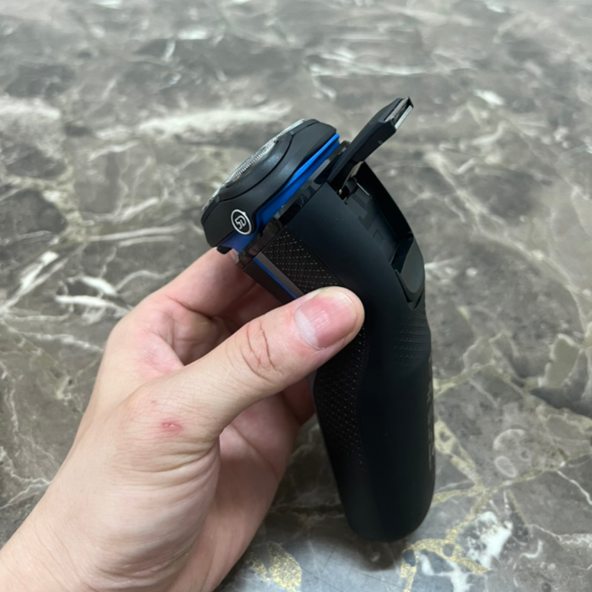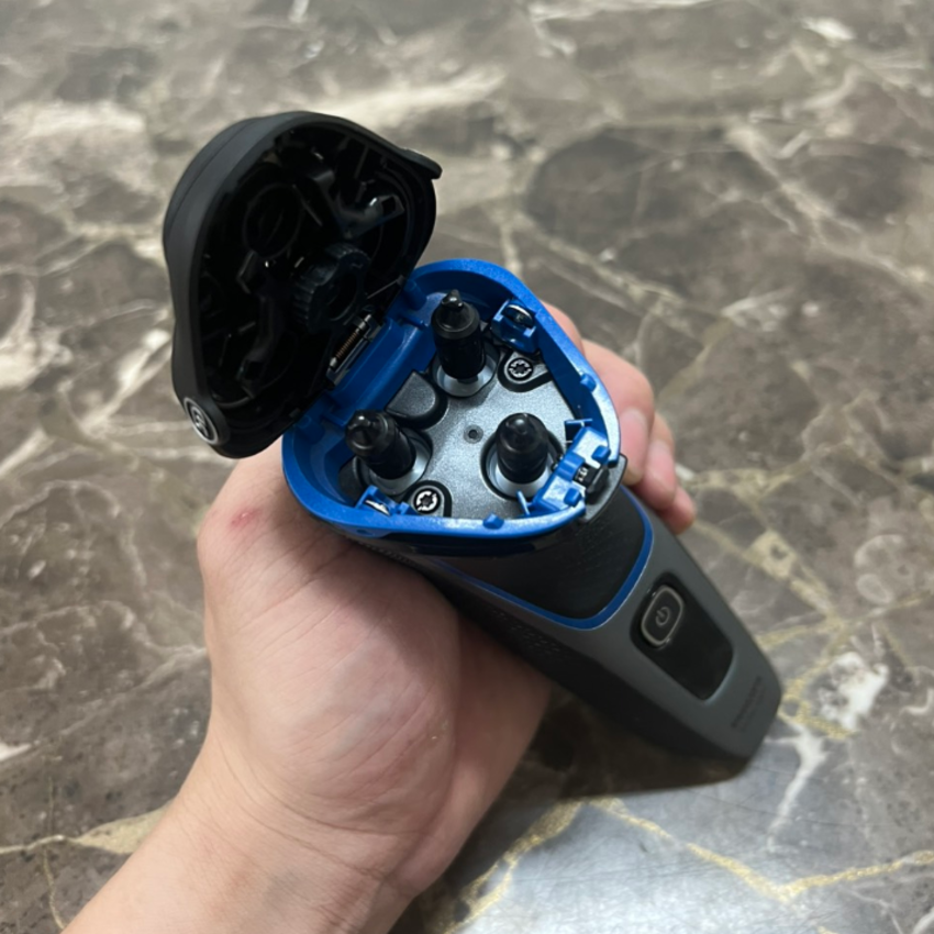 - Mở một chạm để dễ dàng vệ sinh: Làm sạch máy cạo râu một cách dễ dàng. Chỉ với một nút bấm, lật mở đầu máy cạo râu và rửa sạch bằng nước.