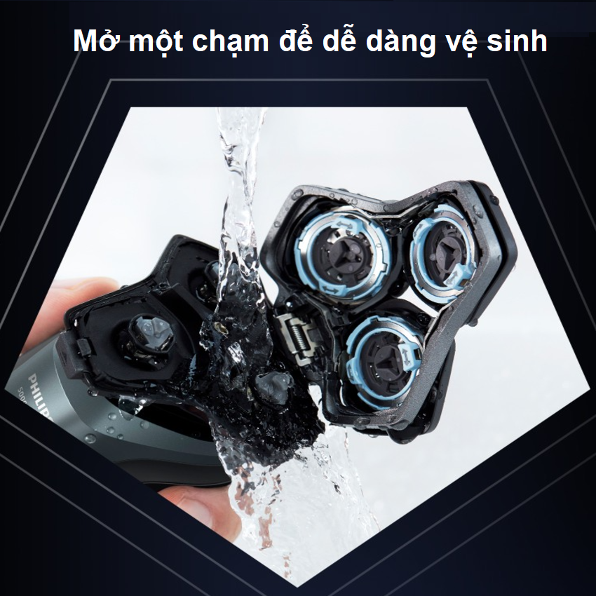 - Vệ sinh máy cạo râu dễ dàng. Chỉ cần một lần chạm nút, bạn có thể lật mở đầu máy cạo ra và rửa sạch bằng nước. Chọn chế độ cạo khô thoải mái hoặc cạo ướt khoan khoái