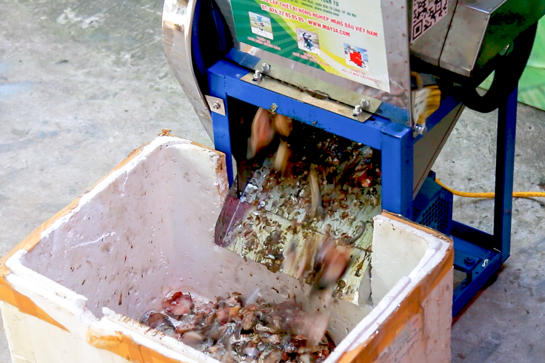 Để giúp các hộ chăn nuôi ba ba, cá chim, cá trê,… thái nhỏ các loại thức ăn như: cá mè nhỏ, cá tép dầu, cá lành canh, giun, ốc, ếch và phế phẩm từ