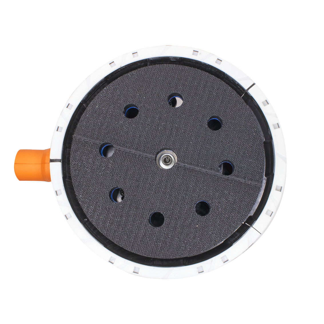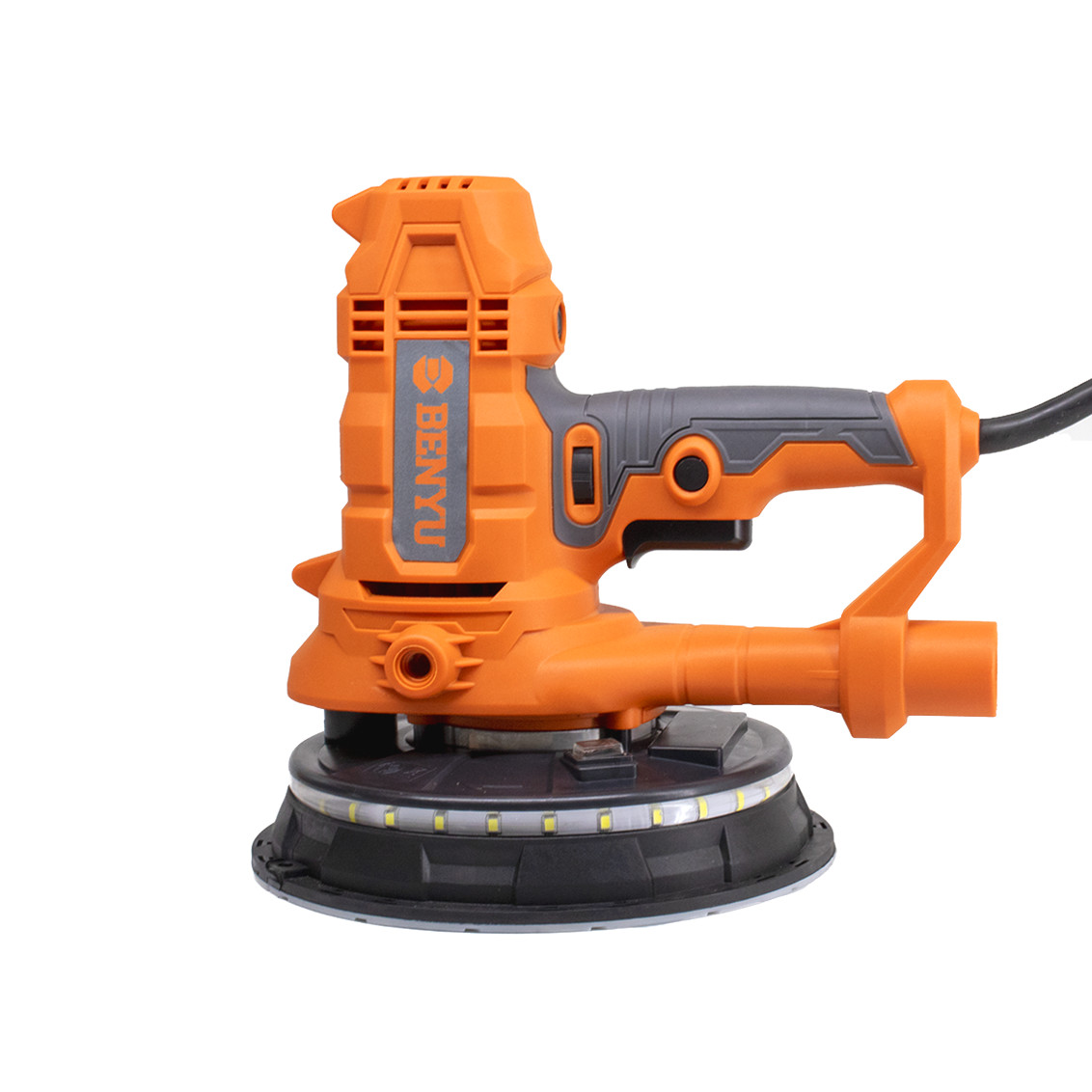 Máy chà nhám tường BENYU sử dụng đĩa chà có đường kính 180mm, thiết kế có các lỗ nhỏ để bụi bẩn sẽ được hút vào đó thông qua ống dẫn kết nối với túi bụi, giúp môi trường làm việc không bị ô nhiễm do bụi tường gây ra.