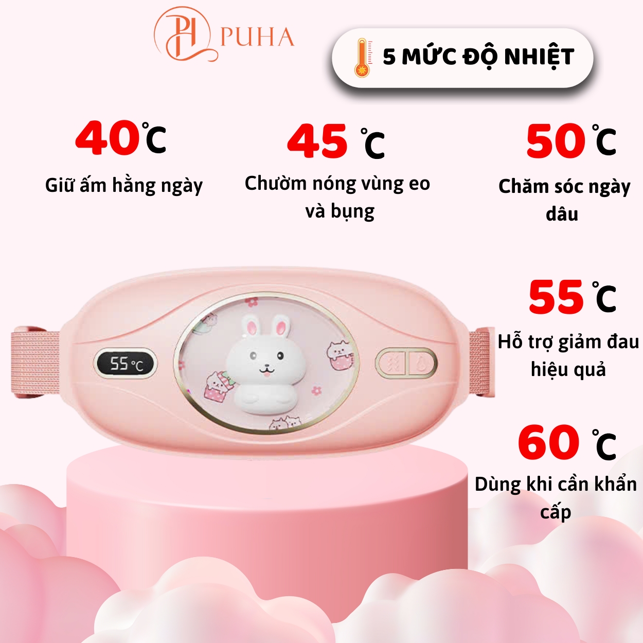 Máy chườm nóng hỗ trợ giảm đau bụng kinh PUHA, có 5 mức nhiệt, Pin 3600MAH , sạc UBS, món quà ý nghĩa tặng người yêu Máy chườm nóng bụng kinh nguyệt PUHA có full