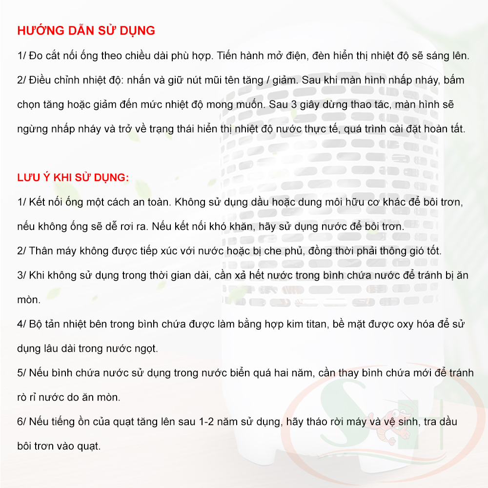- Dùng dây ống: 7 ~ 8mm. HƯỚNG DẪN SỬ DỤNG MÁY ĐIỀU HÒA SUNSUN MINI CHILLER HEATER GH 100 / 120: