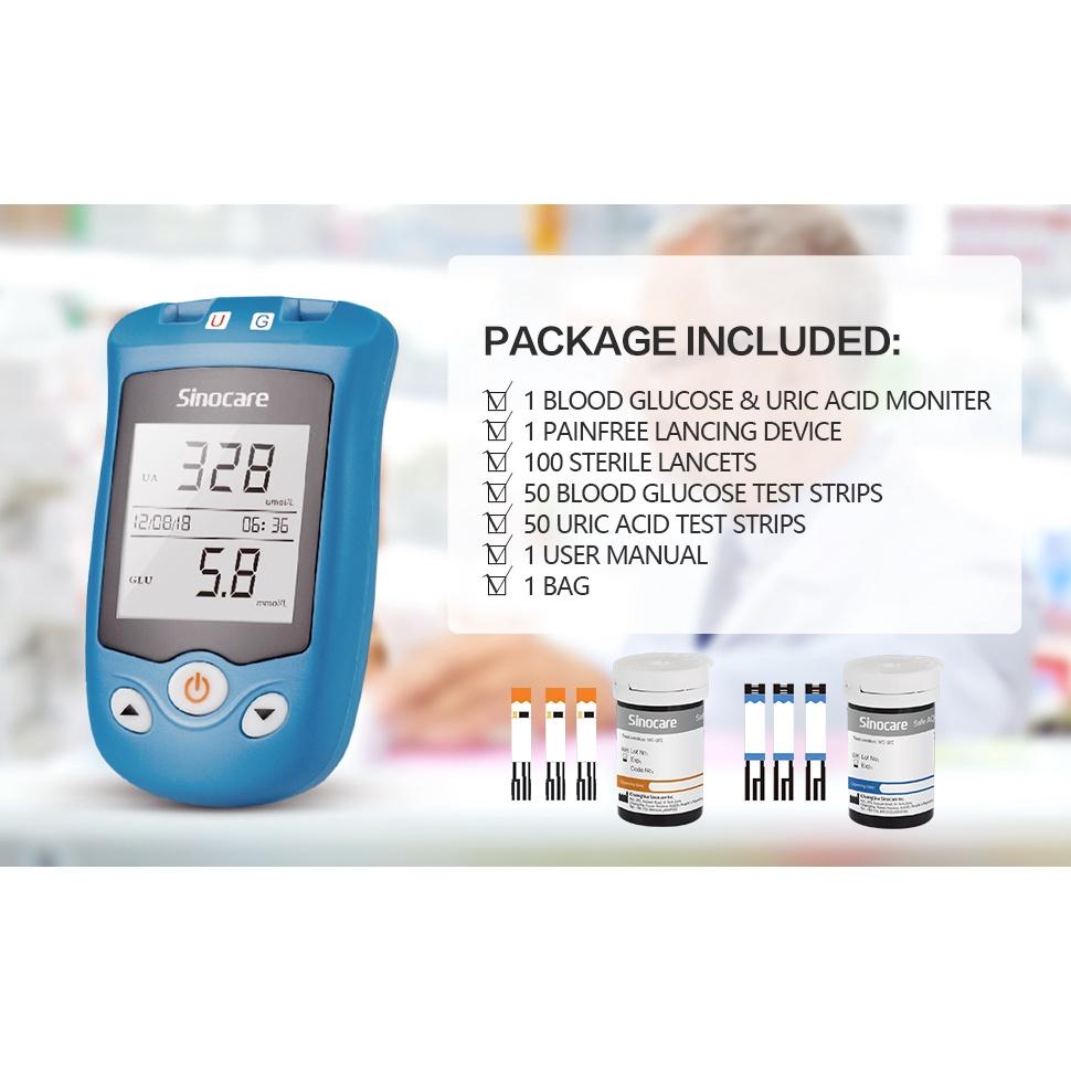 ✨Máy Đo Đường Huyết Và Axit Uric Sinocare Safe AQ UG 2 Trong 1 Kèm 50 Que Đường, 50 Que Gout Và 100 Kim