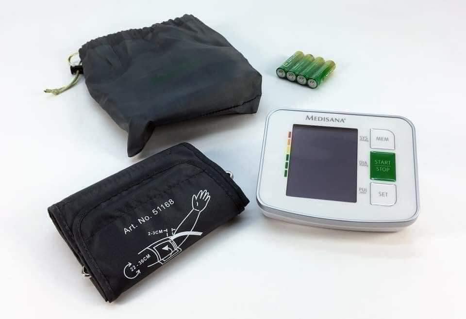 Tính năng máy đo huyết áp Medisana BU512 Đo huyết áp chính xác trên bắp tay Hiển thị: huyết áp tâm thu, huyết áp tâm trương, xung, ngày, giờ Hiển thị loạn nhịp tim Phân loại các giá trị đo được theo thang màu ánh sáng cảnh báo dựa trên hệ thống đánh giá của Tổ chức Y tế Thế giới (WHO) 90 lần ghi nhớ với mỗi bộ nhớ cho hai người dùng Tính toán giá trị trung bình của tất cả dữ liệu được lưu trữ Vòng đo lớn (cho chu vi cánh tay 22-36 cm) Máy đo huyết áp Medisana BU510 hiển thị kết quả đo với chữ số cực lớn (lên đến 22 mm) Thiết bị y tế được cấp giấy chứng nhận Chi tiết kỹ thuật Kích thước: khoảng 13x 11×6 cm Trọng lượng: khoảng 0,30 kg Phương pháp đo: dao động Dải đo: huyết áp 0-299 mmHg; Xung nhịp 40-199 / phút. Pin: 4x 1.5V (AA) Hướng dẫn sử dụng máy đo huyết áp Medisana BU512 Nghỉ ngơi khoảng 5 phút trước khi đo Duỗi thẳng tay trái, ngửa bàn tay lên trên Quấn vòng bít vào bắp tay Không vắt chân, không nói chuyện khi đo Bảo quản máy nơi khô ráo, thoáng mát, tránh ánh nắng trực tiếp và nhiệt độ cao Xem thông tin tờ rơi của sản phẩm Medisana BU512 Tham khảo thêm các dụng cụ đo chăm sóc sức khỏe tại nhà. Thiết bị được đóng gói trong hộp bao gồm 1 thân máy Medisana BU512 1 đầu vòi dẫn khí 1 vòng bít 1 túi đựng dụng cụ 4 pin (AA loại, LR 6) 1,5 1 hướng dẫn sử dụng máy đo huyết áp