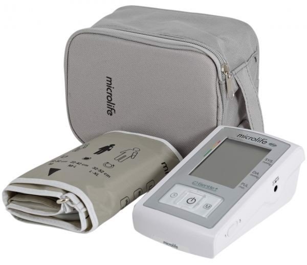 Máy Đo Huyết Áp Bắp Tay Microlife A3 Basic ngoài chức năng đo huyết áp, nhịp tim thông thường, còn tích hợp công nghệ PAD giúp cảnh báo chứng rối loạn nhịp tim, hỗ trợ công nghệ MAM, giúp thực hiện 3 lần đo liên tiếp lấy kết quả trung bình một cách hoàn toàn tự động, cho kết quả có độ tin cậy cao, giúp tiết kiệm thời gian đo và phản ánh tin cậy chỉ số huyết áp. Với thiết kế gọn nhẹ, chất liệu cao cấp, đi kèm túi đeo tiện lợi, bạn có thể mang theo mọi lúc mọi nơi để sử dụng. Các chức năng của máy được thể hiện rõ ràng, đầy đủ ngay trên thân máy, dễ dàng sử dụng, thích hợp cho mọi gia đình.