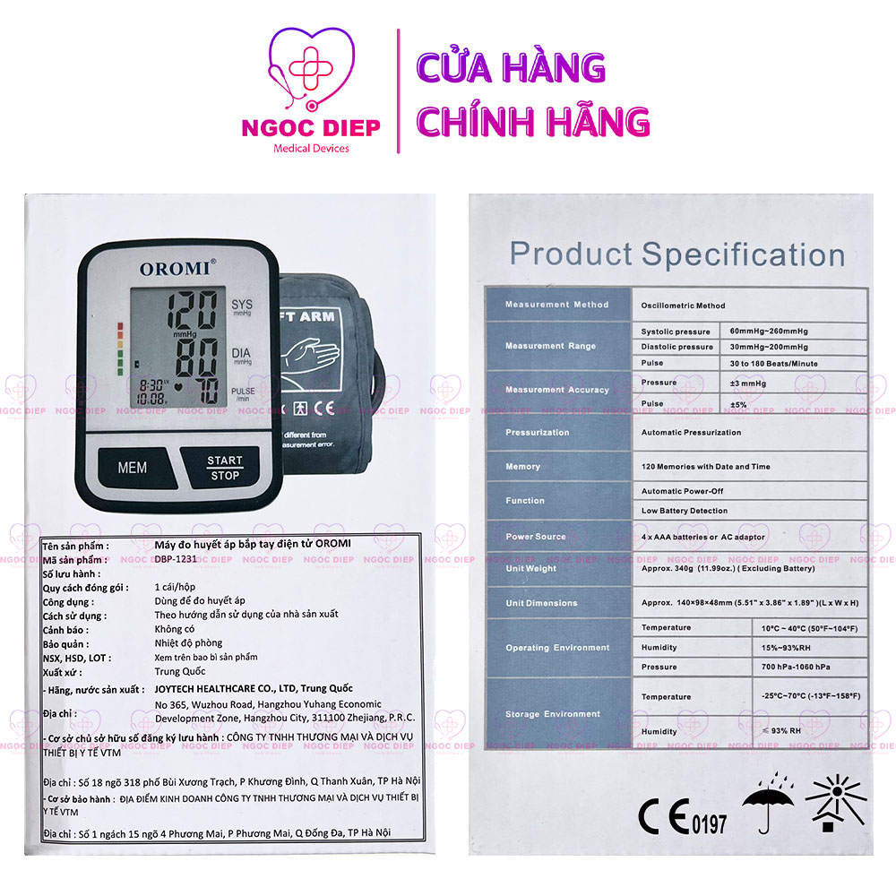 MÁY ĐO HUYẾT ÁP ĐIỆN TỬ BẮP TAY OROMI DBP-1231 TÍNH NĂNG NỔI BẬT - Vị trí đo huyết áp cố định: Bắp tay - Đo huyết áp tối đa (tâm thu), đo huyết áp
