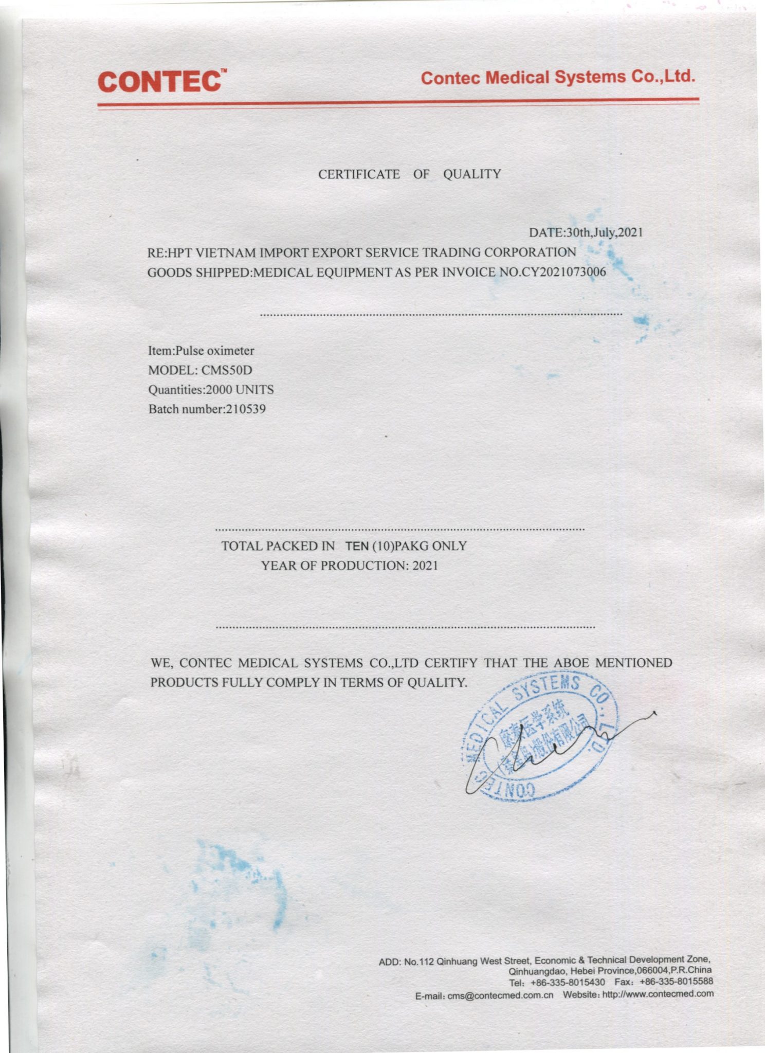Mua tại TiktokMáy đo nồng độ oxy trong máu SpO2 Contec CMS50D là thiết bị cầm tay ứng dụng công nghệ tiên tiến không xâm lấn để kiểm tra độ hòa tan oxy trong máu (SpO2) và nhịp tim thông qua ngón tay giúp phát hiện sớm sự bất thường của cơ thể. Được dùng trong những trường hợp cấp cứu, sử dụng máy giúp thở hoặc trợ thở bằng nguồn oxy bên ngoài. Là sản phẩm đến từ thương hiệu Contec, một thương hiệu nổi tiếng, sở hữu công nghệ Đức. Là hãng sản xuất thiết bị y tế uy tín được ưa chuộng tại nhiều cơ sở y tế, bệnh viện, phòng khám Việt Nam. Đây là thiết bị y tế không thể thiếu trong mùa dịch, để theo dõi nồng độ oxy trong máu, giúp nhận biết những dấu hiệu bất thường của cơ thể và có biện pháp cấp cứu kịp thời.
