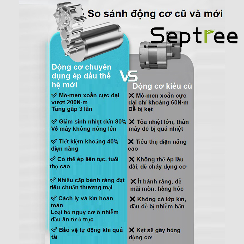 Máy ép dầu thực vật công nghiệp, dùng trong gia đình, nhà hàng, khách sạn thương hiệu Mỹ cao cấp Septree S9S - Hàng nhập khẩu Septree là thương hiệu nổi tiếng đến từ Mỹ, Septree là hãng