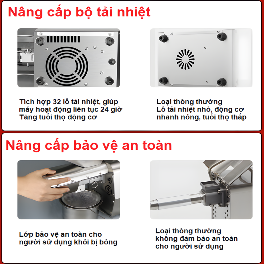 - Miệng ống nguyên liệu năng cấp lớn: 48*38mm