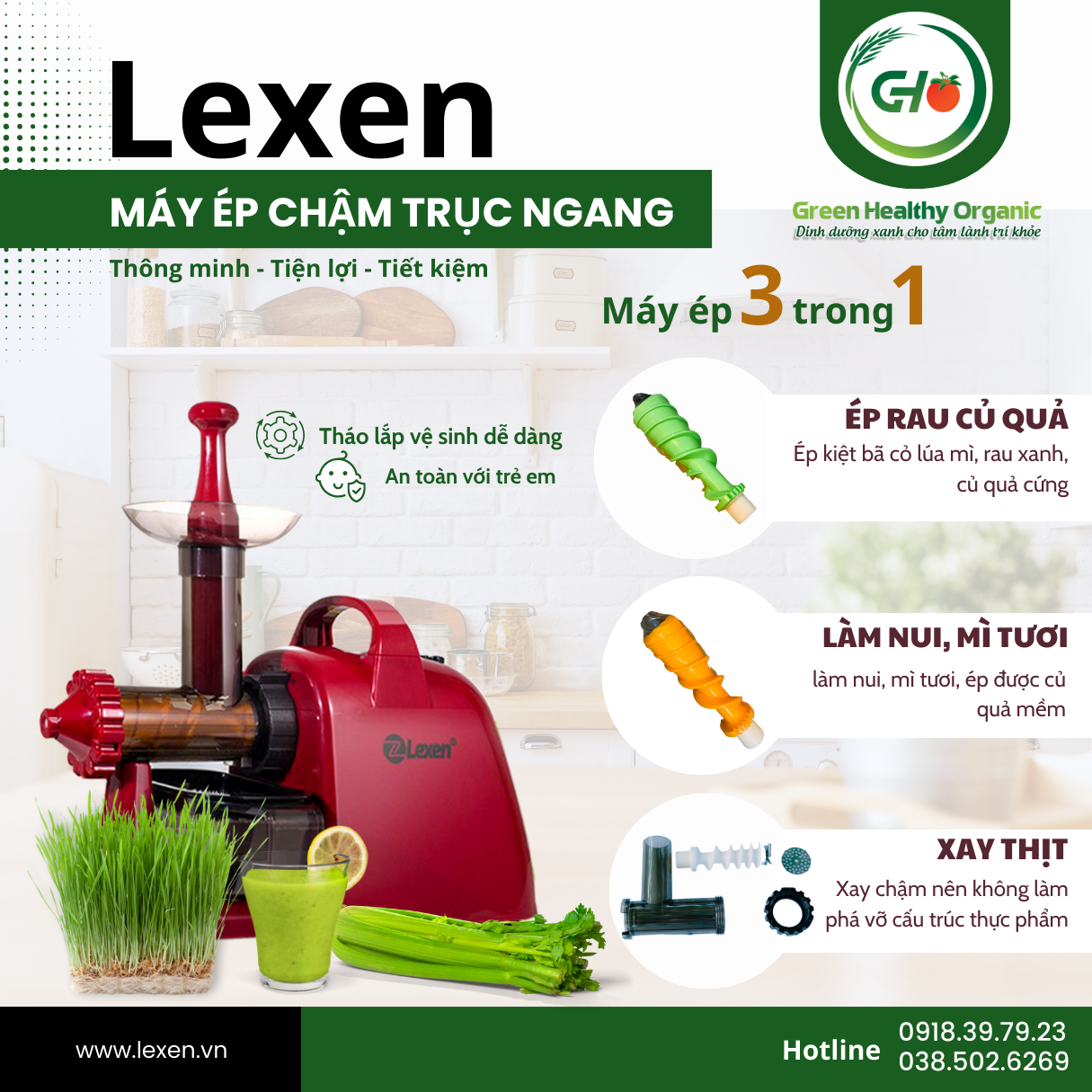 Máy ép chậm Lexen là một trong những sản phẩm gia dụng chất lượng của công ty hàng đầu thế giới tại Hong Kong. Từ lâu hãng Lexen nổi tiếng tại Mỹ và các nước châu âu. Trong những năm gần đây được cộng đồng dinh dưỡng xanh và người tiêu dùng Việt Nam tìm kiếm và tin dùng