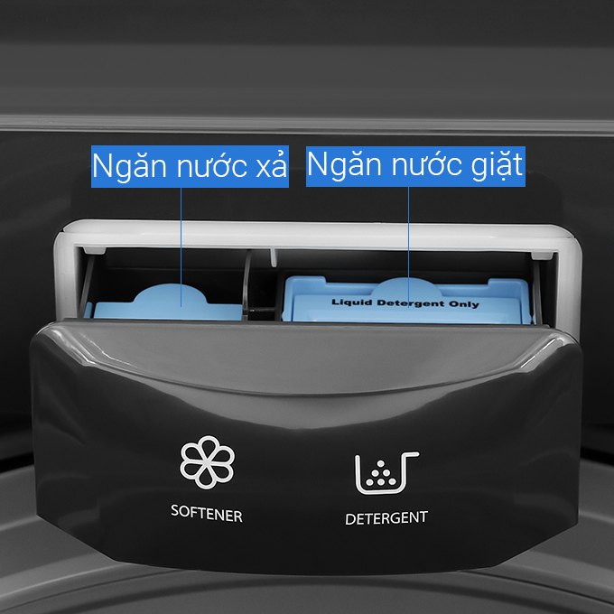 Đặc điểm nổi bật Tự động phân bổ nước giặt xả chính xác theo khối lượng đồ giúp tiết kiệm chất tẩy Ngăn chứa nước giặt xả lớn, chỉ cần đổ đầy 1 lần có