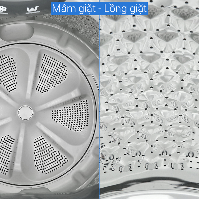 - Lồng giặt bằng chất liệu thép không gỉ giúp hạn chế tối đa tình trạng vi khuẩn và nấm mốc phát triển, chống đóng cặn tốt, đảm bảo an toàn sức khỏe người tiêu dùng.