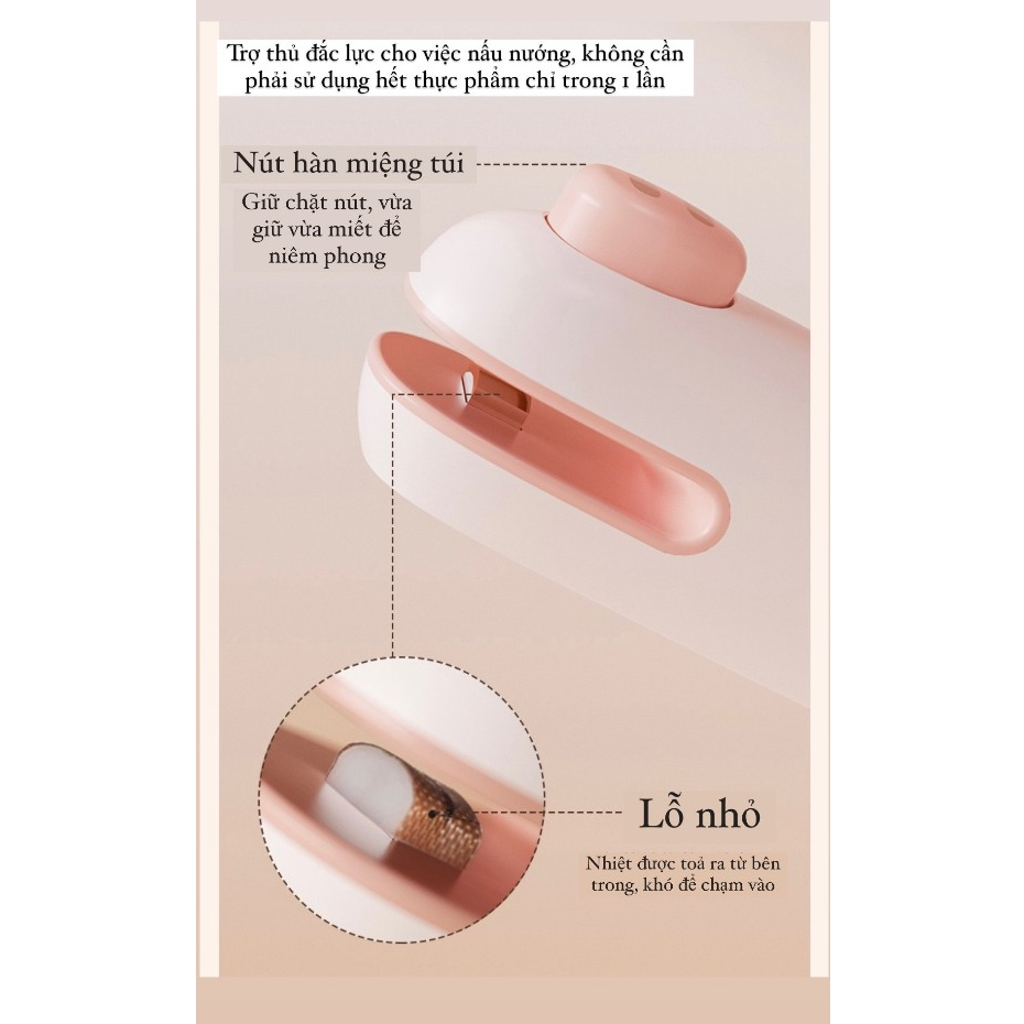 ✨Máy Hàn Miệng Túi Cầm Tay Cute, Máy Ép Miệng Túi Đồ Ăn Vặt Sạc Pin Tích Hợp Nam Châm Kèm Đầu Cắt Tiện Dụng - Hàng Chính Hãng MINIIN