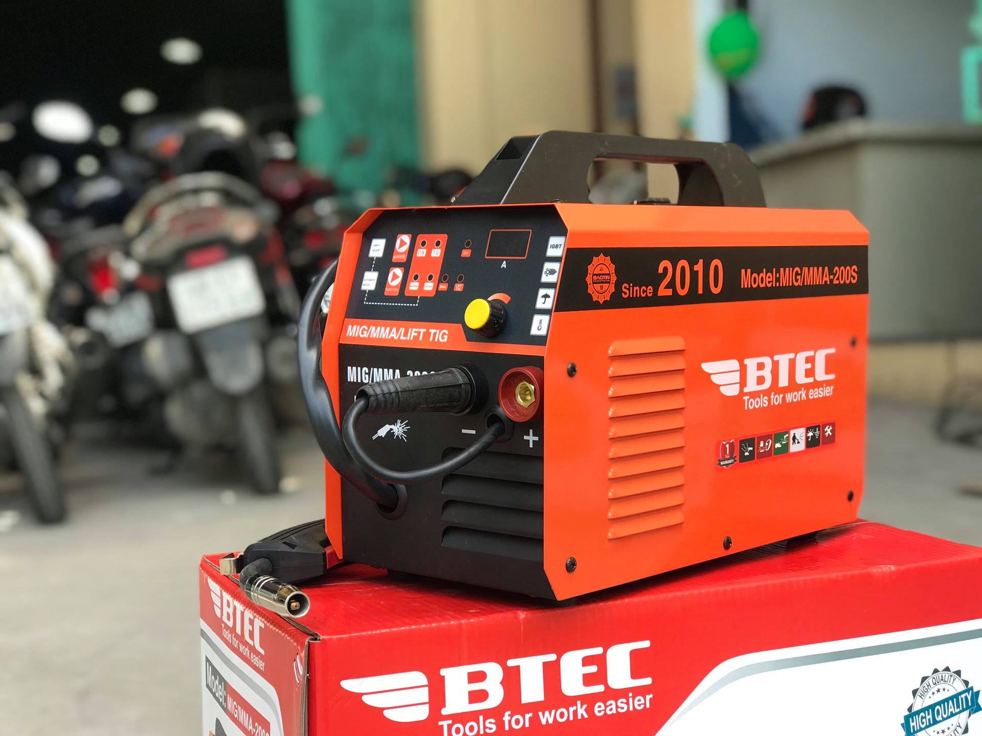 Máy hàn Btec MIG/MMA 200S được sử dụng nhiều trong xây dựng, cơ sở hàn, thiết bị cơ khí, xe, tàu, công ty quảng cáo,... Máy được áp dụng công nghệ biến tần IGBT giúp tiết kiệm điện năng và cho hiệu suất hàn lên đến 80%, bền bỉ với mạch dò nhiệt.