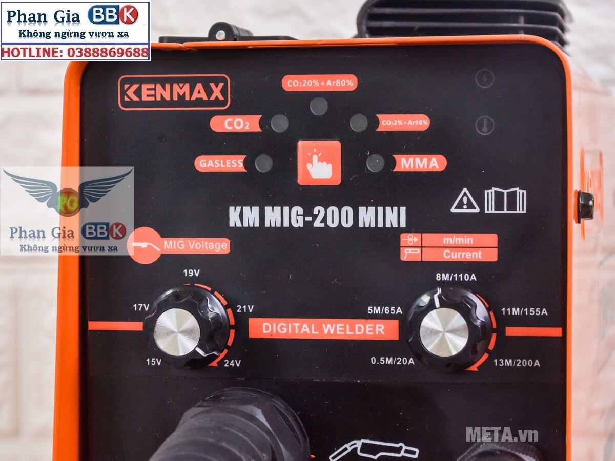 THÔNG SỐ KỸ THUẬT Máy hàn MIG mini KENMAX mã KM MIG-200MINI : Dòng điện 200A Hàn có khí và không khí với dây hàn 0.8mm Hàn que 2.6-3.2li Cuộn dây 0,5-1kg Công suất :