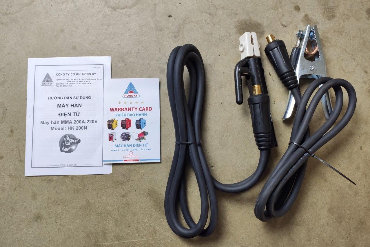 Máy hàn BTEC MMA 200A làm việc hiệu quả với que hàn từ 2mm - 2.6mm Phụ kiện máy hàn gồm: Kìm hàn có dây dài 5m, Kẹp mass có dây dài 3m, mặt nạ hàn,