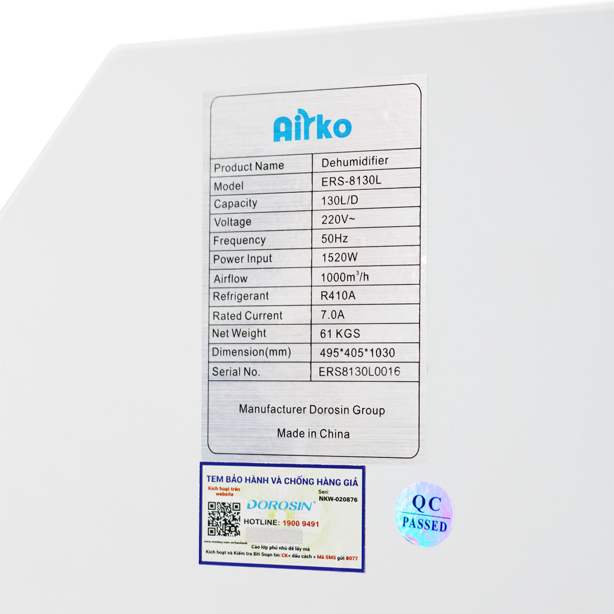 Với bảo hành chính hãng lên đến 24 tháng, Airko ERS-8150L không chỉ mang đến giải pháp hút ẩm hiệu quả, mà còn giúp doanh nghiệp bảo vệ hàng hóa, thiết bị, đảm bảo quy trình sản xuất diễn ra ổn định, không bị ảnh hưởng bởi độ ẩm cao.
