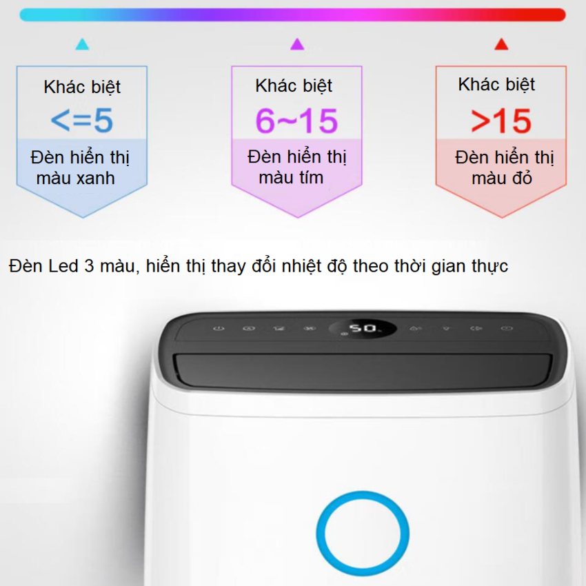 - Hút ẩm thông minh, hút ẩm nhanh, tự động đạt được độ ẩm được cài đặt sẵn.
