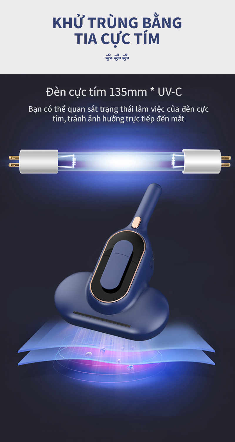 Máy hút bụi giường nệm, tia UV khử khuẩn an toàn