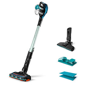 Máy Hút Bụi Không Dây Có Cán Philips FC6728 có đầu hút 180° được thiết kế để hút sạch bụi bẩn chính xác và mạnh mẽ trên tất cả các loại sàn, ngay cả những chỗ khó hút nhất. Đầu hút có gắn đèn LED để tìm và thu gom bụi bẩn đang ẩn nấp Bụi, lông tơ, tóc và vụn bánh mì đều được phát hiện và hút sạch dễ dàng nhờ các đèn LED trong đầu hút SpeedPro.