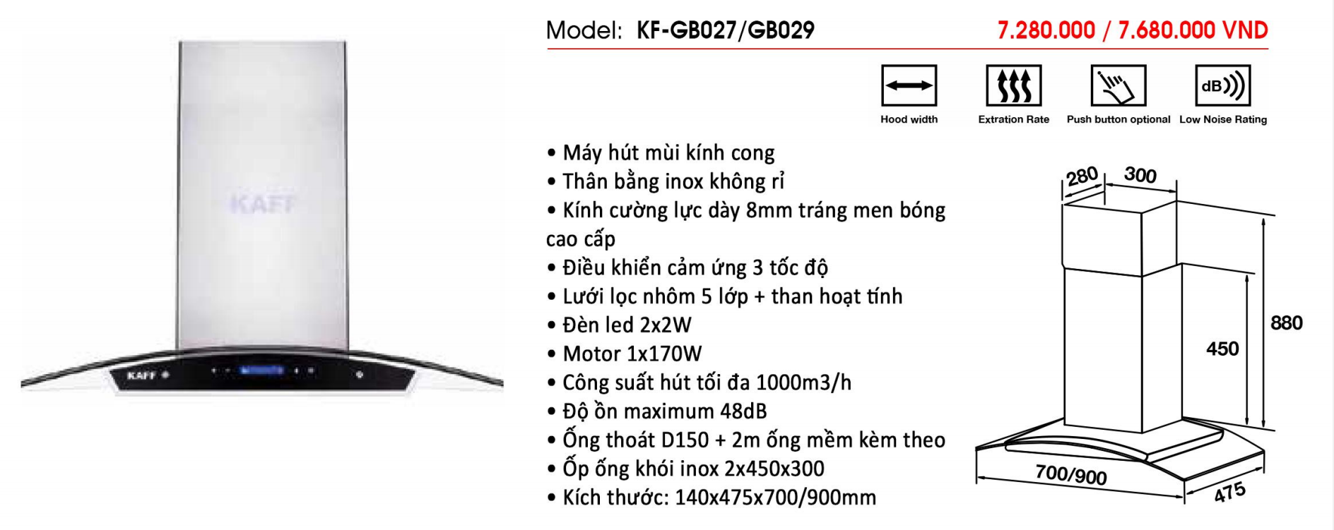 BepXANH.com | Máy hút mùi KAFF KF-GB027 / KAFF KF-GB029 - Khử sạch mùi hôi nhà bếp