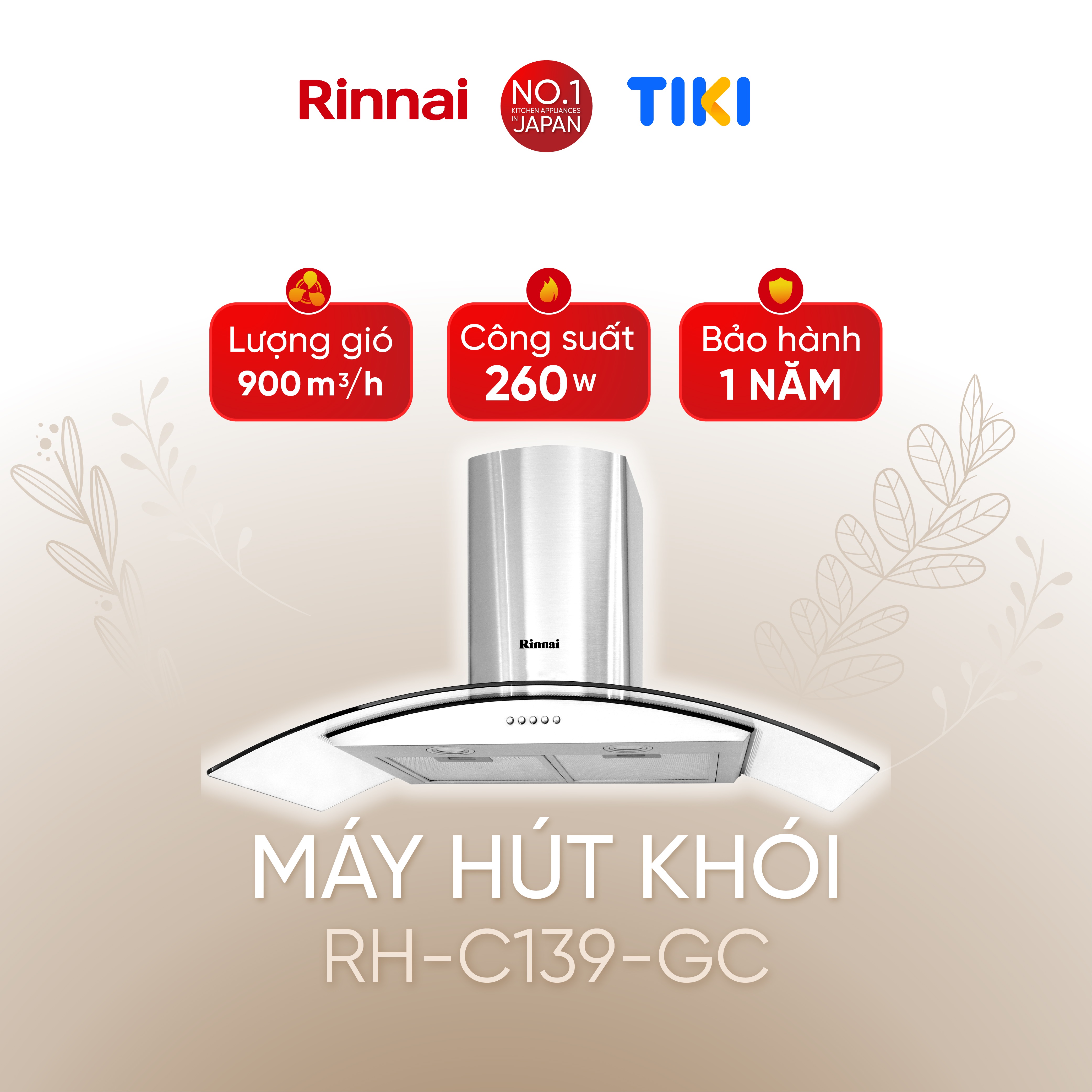 Máy hút khói Rinnai RH-C139-GC là sản phẩm đến từ thương hiệu Rinnai - thương hiệu số 1 Nhật Bản. Với khả năng hoạt động êm ái, máy đem lại hiệu suất hút mạnh mẽ, kết hợp với khả năng khử mùi bằng than hoạt tính hoặc ống thoát hút mạnh mẽ giúp loại bỏ hoàn toàn mùi khó chịu trước khi thải ra môi trường. Được xây dựng với khung sườn bền chắc bằng thép không gỉ kết hợp cùng kính, sản phẩm mang lại sự đáng tin cậy và có khả năng chịu lực cao và vẻ ngoài sang trọng.