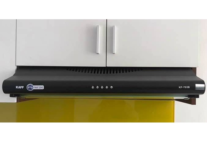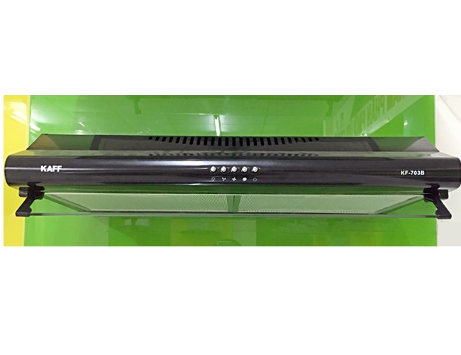 Máy hút mùi Kaff KF-703B được làm bằng thép sơn tĩnh điện cao cấp không ố màu, lưới lọc mỡ 3 lớp, trang bị 2 đèn chiếu sáng Halogen 2 x 15W để tăng thêm độ sáng trong quá trình chế biến thức ăn. Độ ồn động cơ được tiết chế mức tối đa <48dB không gây cảm giác khó chịu cho người dùng khi sử dụng máy.