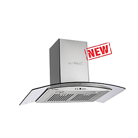 Kiểu máy kính gắn tường - mặt kính cong Chất liệu Inox - kính Màn hình LCD Điều khiển bằng cảm ứng - hẹn giờ tắt Khử mùi bằng than hoạt tính, ống thoát Ø150