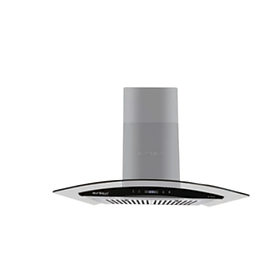 Kiểu máy kính gắn tường - mặt kính cong Chất liệu Inox - kính Màn hình LCD Điều khiển bằng cảm ứng - hẹn giờ tắt Khử mùi bằng than hoạt tính, ống thoát Ø150