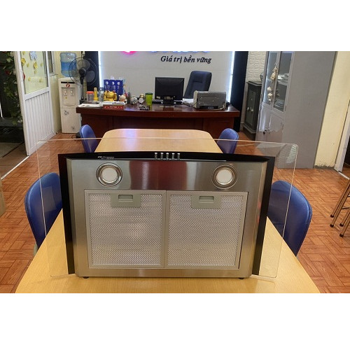 • Máy hút mùi kính cong • Thân bằng inox sáng đẹp • Kính cường lực dày 08mm tráng men bóng cao cấp • Điều khiển cảm ứng 3 tốc độ • Lưới lọc nhôm
