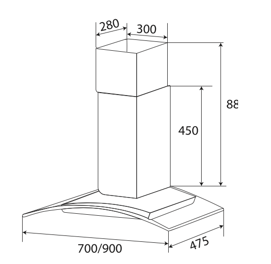 • Máy hút mùi kính cong • Thân bằng inox sáng đẹp • Kính cường lực dày 08mm tráng men bóng cao cấp • Điều khiển cảm ứng 3 tốc độ • Lưới lọc nhôm