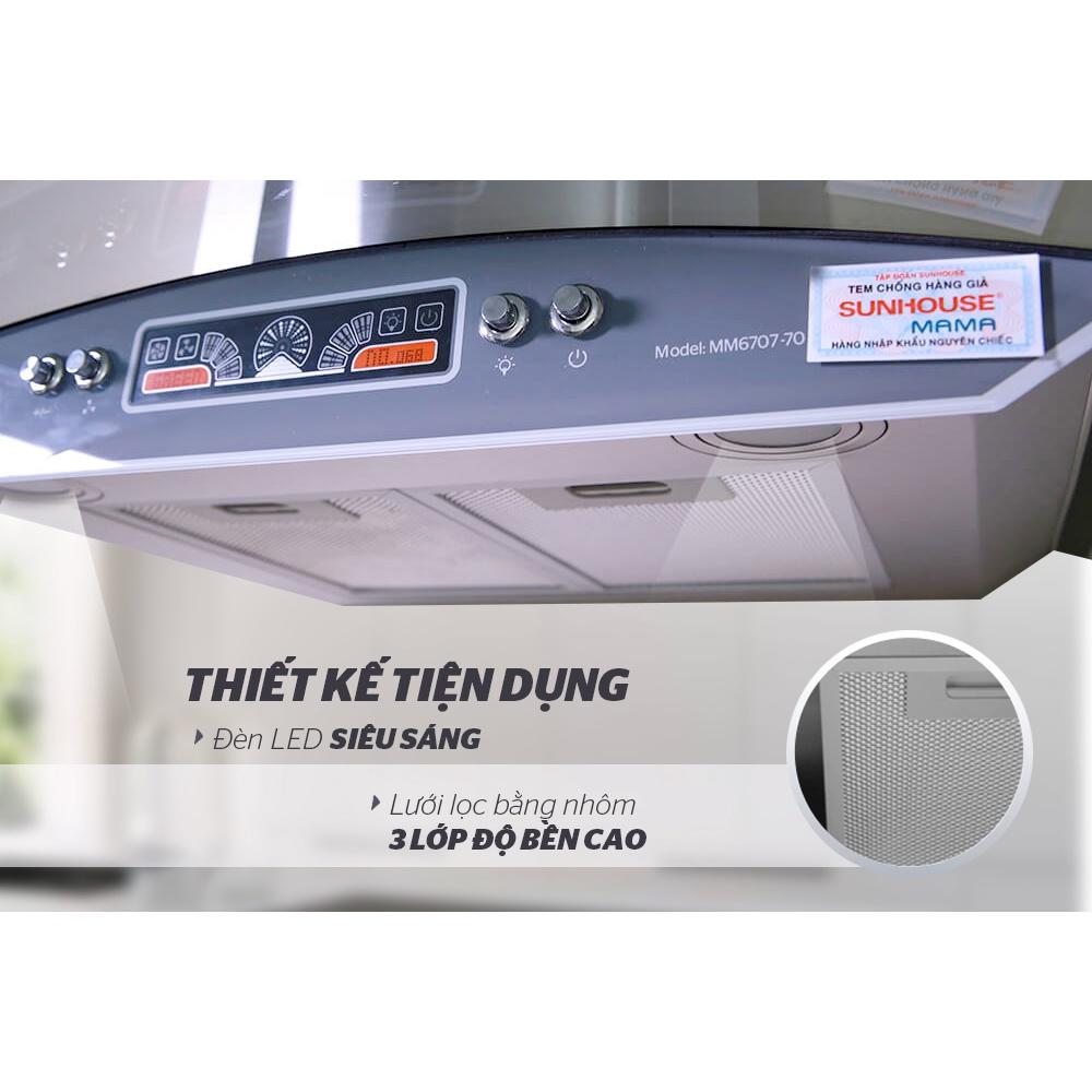 ✨Máy hút mùi kính cong Sunhouse Mama MM6707-70, Công suất hút 1100m3/h, Công suất motor 180W, Hàng chính hãng - Bảo hành 18 tháng tại nhà