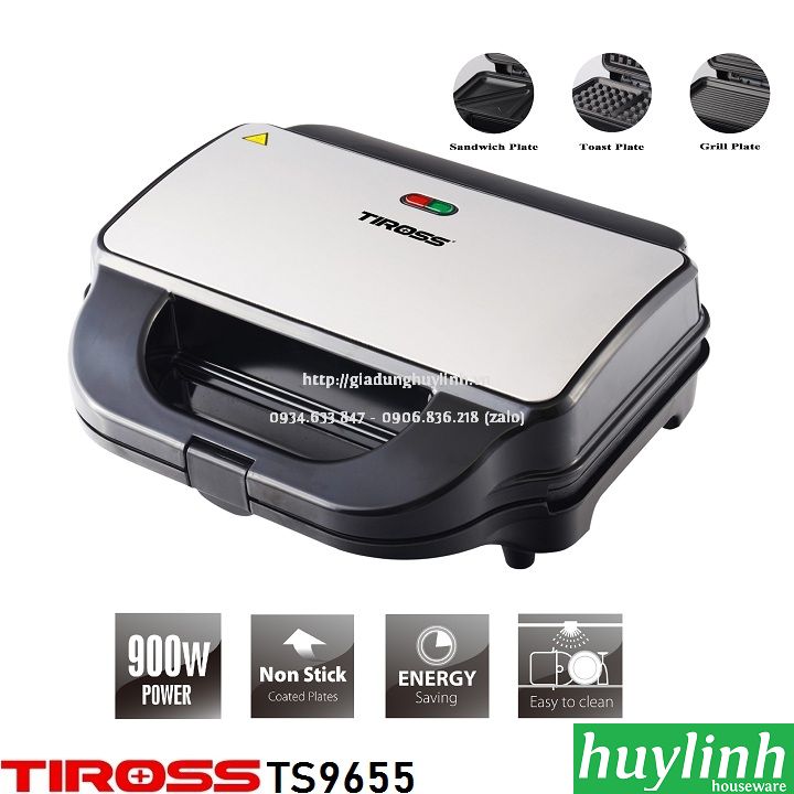 - Huy Linh đổi trả trong 7 ngày nếu có lỗi từ nhà sản xuất Thông số kỹ thuật Kẹp nướng bánh Sandwich Tiross Ts9655 - 3 trong 1