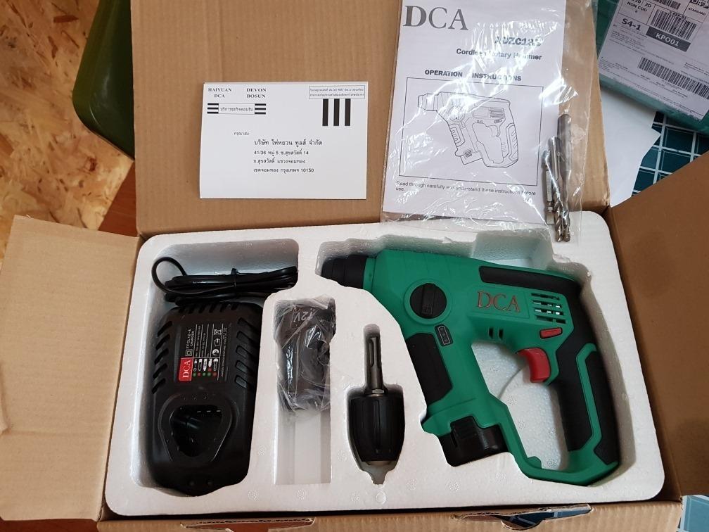 Model này thường được sử dụng nhiều trong các công trường xây dựng, trọng lượng máy nhẹ giúp cầm nắm ở những vị trí trên cao trở nên đơn giản hơn. Máy khoan bê tông dùng pin DCA ADZC13 sẽ xóa tan định nghĩa hàng Trung Quốc là "dỏm", thường thì mọi người nghĩ là máy khoan dùng pin tuy nhỏ gọn dễ dàng làm việc ở nhiều vị trí chật hẹp nhưng lại có nhược điểm là công suất hoạt động thì yếu quá, khi đang làm việc mà hết pin thì chán thôi rồi. 2018 đã khác, không chỉ có những dòng máy dùng pin Lithium-Ion cao cấp của Bosch, Makita, D được cải tiến về hiệu suất hoạt động. Công cụ - Dụng cụ dùng pin Li-Ion cũng được gia tăng năng suất để đáp ứng tốt những công việc chuyên nghiệp, DCA power tools là thương hiệu máy móc - thiết bị giá rẻ! Dòng máy này thì chuyên dùng để khoan bê tông, là sản phẩm mới được DCA ra mắt cách đây ít tháng. Máy khoan bê tông dùng pin DCA ADZC13 có khả năng khoan/khoét lỗ trên các chất liệu thông dụng như gỗ, bê tông, sắt không hề thua kém máy khoan điện cầm tay có công suất 700W. Bạn sẽ không còn phải lo về việc khi đang sử dụng mà hết pin làm ảnh hưởng đến công việc nữa, vì đa số các sản phẩm mới này đều có sẵn 2 pin, có thể mua thêm bao nhiêu pin cũng được. Chỉ cần sạc pin đủ sau mỗi lần làm là được rồi (đi làm ở xa thì mang theo 2 - 3 cục), sản phẩm được đựng trong hộp nhựa thuận tiện cho việc bảo quản và mang theo khi cần dùng tới, bộ sạc pin nhỏ gọn cho tốc độ sạc đầy pin nhanh!