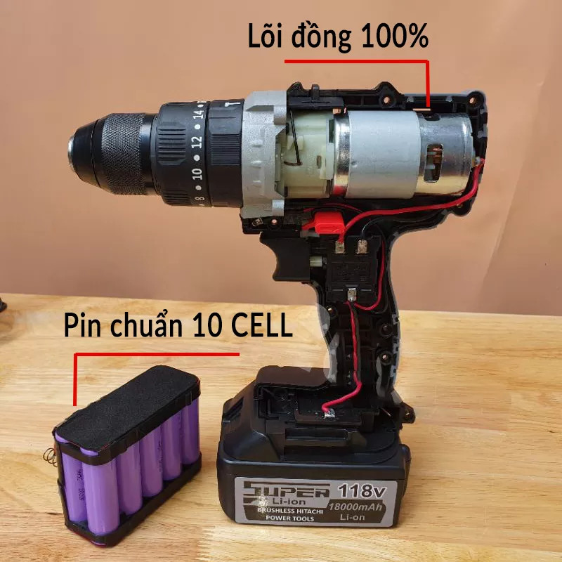 THÔNG SỐ KỸ THUẬT Gỗ: 36mm (1-7/16") Tốc độ không tải: Cao: 0-1,400, Thấp: 0-400 Trọng lượng tịnh: 1.7kg (3.8lbs) Xuất xứ Trung Quốc Lực đập/phút: Cao: 0-21,000 , Thấp: 0-6,000 Công nghệ Nhật Bản