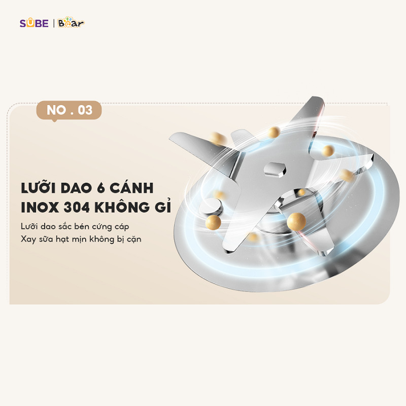 - Những ưu điểm nổi bật của máy làm sữa hạt Bear SB-SH06C 2.1. Dung tích máy nhỏ gọn, tiện lợi Với dung tích 600ml, Bear SB-SH06C không chỉ tiết kiệm không gian trong phòng bếp mà còn đáp ứng đầy đủ nhu cầu sử dụng cho cả cá nhân và gia đình. Thiết kế nhỏ gọn của máy không chỉ tiết kiệm thời gian mà còn giúp tiết kiệm công sức trong việc chuẩn bị bữa sáng hoặc thưởng thức các loại đồ uống sáng tạo tại nhà. Đây thực sự là một chiếc hoàn hảo cho những người muốn tận hưởng những trải nghiệm độc đáo và tiện lợi mỗi ngày. 2.2. Công suất hoạt động mạnh mẽ, lưỡi dao sắc bén Máy có động cơ được làm bằng đồng, công suất lên tới 600W đảm bảo tốc độ xay nhanh chóng và ổn định trong quá trình hoạt động. Nhờ đó, máy có thể xay nhuyễn hoặc nghiền nát nguyên liệu một cách dễ dàng mà không mất quá nhiều thời gian. Ngoài ra máy còn được thiết kế với 6 lưỡi dao xếp theo hình cánh hoa, đảm bảo không bỏ sót nguyên liệu khi xay. Khi thêm nguyên liệu vào khoang chứa, máy sẽ bắt đầu khuấy đều nguyên liệu lên và xay nhuyễn trong thời gian ngắn. 2.3. Chất liệu máy bền bỉ, an toàn Khoang chứa và lưỡi dao xay của máy đều được làm từ chất liệu inox 304 chống gỉ, không sinh ra các chất độc hại trong quá trình xay nấu. Máy làm sữa hạt Bear 0.6L SB-SH06C còn có nắp từ tính an toàn, chỉ khi bạn đậy nắp máy đúng vị trí mới có thể sử dụng được. Chân đế chống trơn trượt làm từ silicon cao cấp, chắc chắn và không xảy ra rung lắc khi máy đang hoạt động. 2.4. Thiết kế giảm tiếng ồn không gây khó chịu Chiếc máy làm sữa hạt được trang bị 5 lớp làm giảm tiếng ồn với cấu trúc khoa học. Vòng đệm tiếng ồn ở nắp máy làm giảm truyền tiếng ồn. Động cơ làm bằng đồng nguyên chất giúp giảm tiếng ồn từ sự ma sát của các bánh răng. Lớp bọc bên ngoài giúp ngăn ngừa tiếng ồn phát ra khi máy đang hoạt động. Lớp đế và ống bên trong làm giảm tiếng ồn hiệu quả, đảm bảo máy luôn hoạt động êm ái. 2.5. Bảng điều khiển cảm ứng thông minh Chiếc máy làm sữa hạt Bear 0.6L SB-SH06C được trang bị bảng điều khiển cảm ứng thông minh, mang đến sự tiện lợi và linh hoạt cho người dùng khi sử dụng. Màn hình cảm ứng còn cho phép bạn dễ dàng theo dõi quá trình hoạt động của thiết bị, giúp bạn kiểm soát và quản lý thời gian nấu một cách hiệu quả hơn.