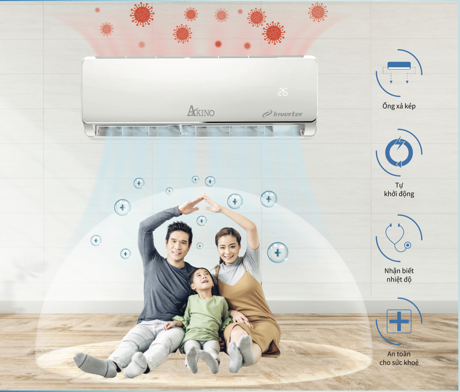 Máy lạnh AKINO inverter 2.5HP AKN-24CINV1FA 24000BTU Thiết kế hiện đại, trang nhã, tinh tế Tiết kiệm điện năng Tiện ích trên dòng điều hòa AKINO - Khả năng tự làm sạch vượt trội và