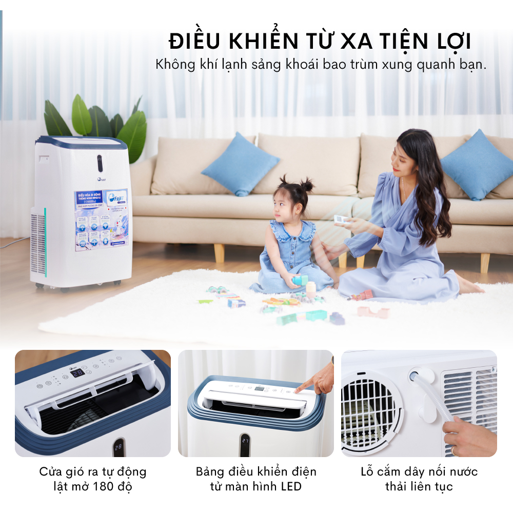 Máy điều hòa di động thông minh FUJIHOME-Công nghệ Nhật Bản >>   Máy lạnh di động 4 trong 1: làm lạnh, hút ẩm, quạt, lọc không khí <<<