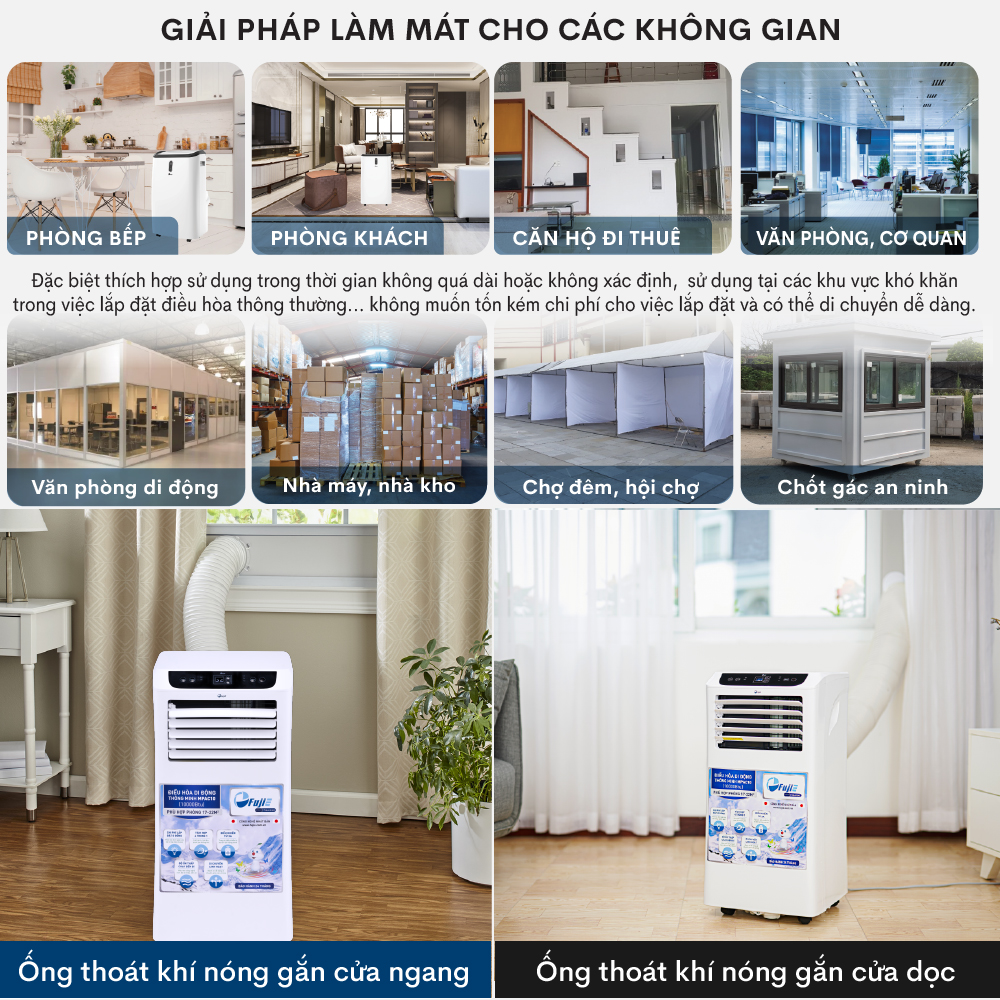 Máy điều hòa di động thông minh FujiE  công nghệ Nhật Bản Công suất 12,000BTU [ Phù hợp sử dụng cho không gian kín diện tích 20-35m2]       Vậy máy điều hòa di