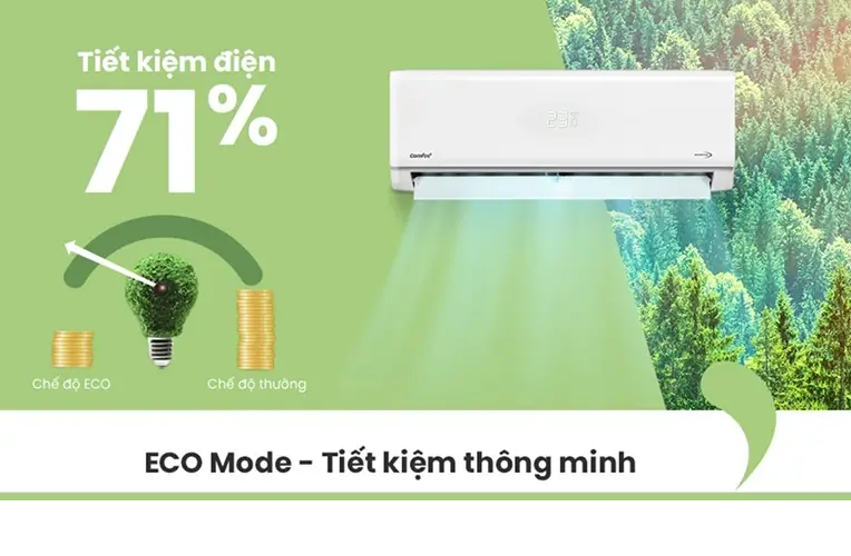 • Quản lý tiêu thụ điện năng Tận hưởng cuộc sống với sự chủ động trong tầm tay kiểm soát năng lượng tiêu thụ.   Hệ sinh thái nhà thông minh biết nói Với khả năng kết nối hệ sinh thái nhà thông minh, điều hòa Comfee hỗ trợ kết nối nhiều thiết bị, bao gồm máy tính bảng, loa thông minh và đồng hồ thông minh, cho phép bạn điều khiển điều hòa rảnh tay tại nhà bất cứ lúc nào.   Và đặc biệt kết nối được các ứng dụng trợ lý ảo phổ biến nhất hiện nay như Google Assistant, Apple Homekit, Maika Assistant - ra lệnh bằng giọng nói tiếng việt.    Comfee cũng hỗ trợ chia sẻ thiết bị để nhiều người dùng trong gia đình cùng sử dụng. Siêu thông minh với khả năng quản lý điện năng tiêu thụ Theo dõi năng lượng Theo dõi thời gian sử dụng và mức tiêu thụ năng lượng của máy hàng ngày, hàng tuần và hàng tháng.   Báo cáo năng lượng Báo cáo tiêu thụ năng lượng bao gồm thời gian kích hoạt chế độ Eco+, mức tiêu thụ năng lượng và so sánh với tháng trước.   Nhắc nhở Đặt kế hoạch tiêu thụ năng lượng dự kiến hàng tháng cho máy, bạn sẽ nhận được thông báo khi mức tiêu thụ đạt đến một tỷ lệ phần trăm nhất định của dự kiến ban đầu. Siêu tiết kiệm với Eco+ Công nghệ tiết kiệm năng lượng thế hệ mới của Comfee, ECO+, được trang bị thuật toán AI, có thể cân bằng giữa nhu cầu tiết kiệm năng lượng và sự thoải mái. Chỉ với một lần nhấn nút ECO+, máy điều hòa sẽ tiết kiệm hơn 30% năng lượng so với chế độ làm mát thông thường mà vẫn đảm bảo được sự mát lạnh mong muốn được chứng nhận bởi SGS. GEAR+ mode - Tiết kiệm điện tối đa mà vẫn thoải mái Tăng số cấp độ công suất Máy điều hòa được nâng cấp từ 3 cấp độ (50%, 75%, 100%) lên 5 cấp độ (20%, 40%, 60%, 80%, 100%), cho phép kiểm soát công suất chính xác, đáp ứng các nhu cầu sử dụng khác nhau. Tối ưu tiết kiệm năng lượng Khi cảm thấy đủ mát, bạn có thể chọn mức công suất thấp hơn để giảm tiêu thụ điện mà vẫn duy trì sự thoải mái. SIÊU TRONG LÀNH AI Frost Clean ở -10℃ - Làm sạch chủ động thông minh Điều hòa Comfee Inverter được nâng cấp từ chế độ rửa bằng nước (20 phút) lên chế độ làm sạch bằng băng (42 phút).   Công nghệ này giúp đóng băng vi khuẩn và bụi bẩn ở -10 độ C, sau đó rã đông và làm sạch, giúp rửa trôi mọi bụi bẩn và vi khuẩn hiệu quả nhất, giữ cho làn gió luôn trong lành và an toàn cho sức khỏe. Siêu tiện lợi Đa dạng nguồn cung ứng điện, kết nối nguồn điện linh hoạt, hữu dụng với 2 chế độ:    Chế độ 1:  Nguồn điện từ dàn lạnh   Chế độ 2:  Nguồn điện từ dàn nóng   Điều hòa thông minh Comfee hoàn toàn lắp đặt được ở nhiều dạng công trình tòa nhà như chung cư.     SIÊU BỀN BỈ Lớp phủ Golden Coating chống ăn mòn Lớp phủ Golden Coating có khả năng chống oxy hóa và ăn mòn tốt hơn so với các lá tản nhiệt thông thường, giúp máy hoạt động ổn định và bền bỉ hơn.    Lớp phủ này có trên cả dàn nóng và dàn lạnh để ngăn chặn sự sinh sôi và lây lan của vi khuẩn, đồng thời chịu được các tác nhân gây ăn mòn như axit, muối, đặc biệt bền bỉ ở những khu vực như biển đảo.   SIÊU BỀN BỈ PCB với khả năng hoạt động ở dải điện áp rộng Với hệ thống điều khiển điện tử cải tiến, bộ biến tần của Comfee cho phép hoạt động trong dải điện áp từ 80V-265V.   Dù là trong thời điểm cao điểm tiêu thụ điện ở khu vực đô thị hay thiếu hụt nguồn cung cấp điện ở vùng xa, máy vẫn hoạt động một cách ổn định.   SIÊU BỀN BỈ PCB với lớp phủ UV Độ ẩm trong không khí có thể tạo ra sự oxy hóa cho các linh kiện trên PCB và gây ra hiện tượng rò rỉ điện, đây là nguyên nhân chính khiến PCB dễ bị hư hỏng.   Lớp phủ UV mới gấp đôi độ dày, giúp linh kiện trên PCB khó bị oxi hóa, hư hỏng mang lại độ bền cao cho máy.     Dễ dàng bảo trì Thiết kế PCB và động cơ quạt dễ dàng tháo lắp nhanh chóng, tiết kiệm thời gian bảo trì và vệ sinh máy, tăng hiệu quả bảo trì tối đa nhất. Thông số kỹ thuật Chức năng nổi bật Thông số IOT - Kết nối Wifi Có AI Cool - Điều khiển bằng giọng nói Có iECO - Quản lý điện năng tiêu thụ qua ứng dụng Có Sleep Curve - Chương trình chăm sóc giấc ngủ Có Follow me - Cảm biến nhiệt độ Có Định vị thông minh có thể tự khởi động trước khi về tới nhà Có Eco mode - Chế độ tiết kiệm điện tối ưu Có Active Clean mode - Chế độ tự làm sạch dàn lạnh (đóng băng) Có Lớp phủ chống ăn mòn dàn nóng và dàn lạnh (Golden Coating) Có Kết nối linh hoạt 2 nguồn (từ dàn nóng/từ dàn lạnh) Có PCB với lớp phủ UV Có Điện áp trải dài 80V ~ 265V Có Auto restart mode - Tự khởi động lại Có Dehumidification mode - Chế độ hút ẩm Có Dual Filtration - Công nghệ lọc kép Có Màn hình hiển thị nhiệt độ trên dàn lạnh Có Đèn trên remote Có   AI COOL Điều khiển bằng giọng nói Chỉ với một vài thao tác đăng nh