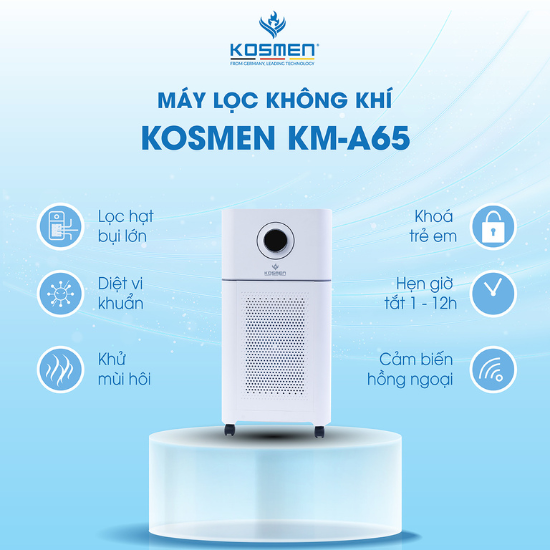 Máy lọc không khí Kosmen KM-A65 được áp dụng các công nghệ hiện đại đến từ Đức có tác dụng lọc sạch các loại bụi mịn, phấn hoa, nấm mốc, lông thú cưng và giúp loại bỏ mùi hôi hiệu quả. Chính vì vậy, Kosmen KM-A65 đã trở thành một trong những thiết bị công nghệ thông minh giúp bảo vệ không gian sống cho mọi gia đình.