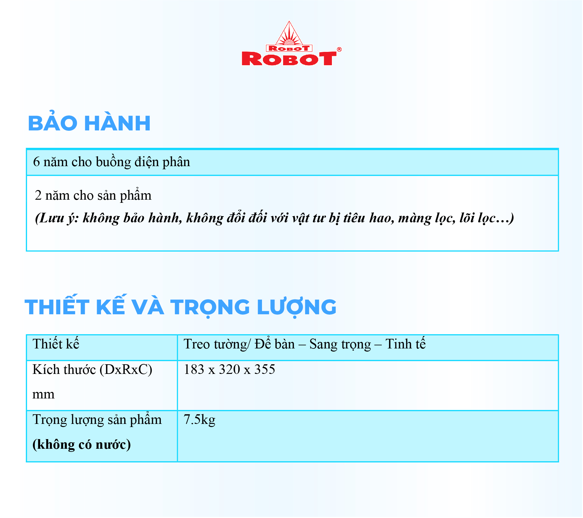 - Hệ thống điều khiển cảm ứng trên mặt phủ kính với màn hình LCD tinh tế ️ + Với mong muốn nhiều gia đình Việt có thể sử dụng nước điện giải iON kiềm với chi phí hợp lý để bảo vệ sức khỏe, sắc đẹp & nâng cao chất lượng cuộc sống, ROBOT mang đến sản phẩm “Chất lượng Quốc tế - Giá thành Việt Nam”, phù hợp với mức sống của nhiều người. Tiết kiệm cho người tiêu dùng đến hơn một nửa chí phí so với máy nhập khẩu chỉ từ 30 – 50%, nhưng sở hữu nhiều ưu điểm, tính năng vượt trội, chất lượng cao. ️ + Chế độ bảo hành chính hãng, tận nơi, vật tư và linh kiện, lõi lọc luôn có sẵn hạn chế tối đa chi phí sửa chữa, bảo trì. VĐV Cầu Lông Nguyễn Tiến Minh – tay vợt từng đứng Top 5 Thế Giới chia sẻ: Sau một thời gian sử dụng Máy lọc nước điện giải iON kiềm Minh thấy cải thiện sức khỏe rất nhiều và tốc độ hồi phục sau tập luyện, thi đấu cũng nhanh hơn so với trước đây. Bây giờ mỗi khi đi tập, hay khi đi thi đấu, Minh đều mang theo nước iON kiềm để uống. ROBOT là một thương hiệu Việt Nam uy tín nên Minh hoàn toàn tin tưởng và lựa chọn Máy lọc nước điện giải iON kiềm ROBOT. ️Thông Tin Thương Hiệu CÔNG TY CỔ PHẦN ĐẦU TƯ ROBOT