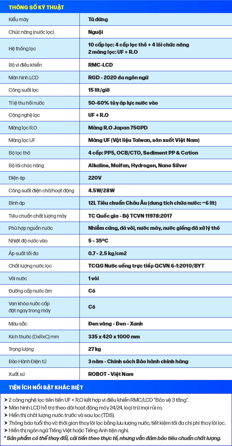 Máy Lọc Nước Nóng Lạnh ROBOT Thế Hệ Mới - Duy Nhất 2 Màng Lọc UF + R.O + RMC-LCD - Bảo Vệ 3 Tầng