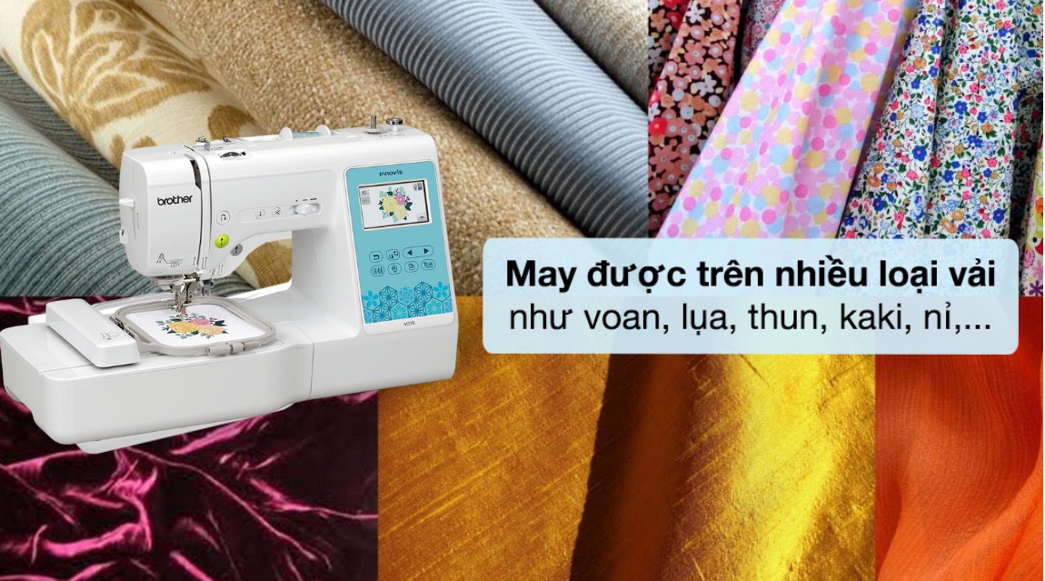 Thoả sức sáng tạo những mẫu thiết kế may và thêu cá nhân với máy may thêu đa năng Brother M370. Với tính năng may, thêu và quilting (nghệ thuật ghép vải và chần bông), máy M370 thể hiện sự nổi trội về hiệu suất hoạt động và khả năng sáng tạo. Nếu bạn tìm kiếm một dòng máy đáp ứng hoàn hảo những nhu cầu cá nhân hóa hoặc tăng giá trị sản phẩm.