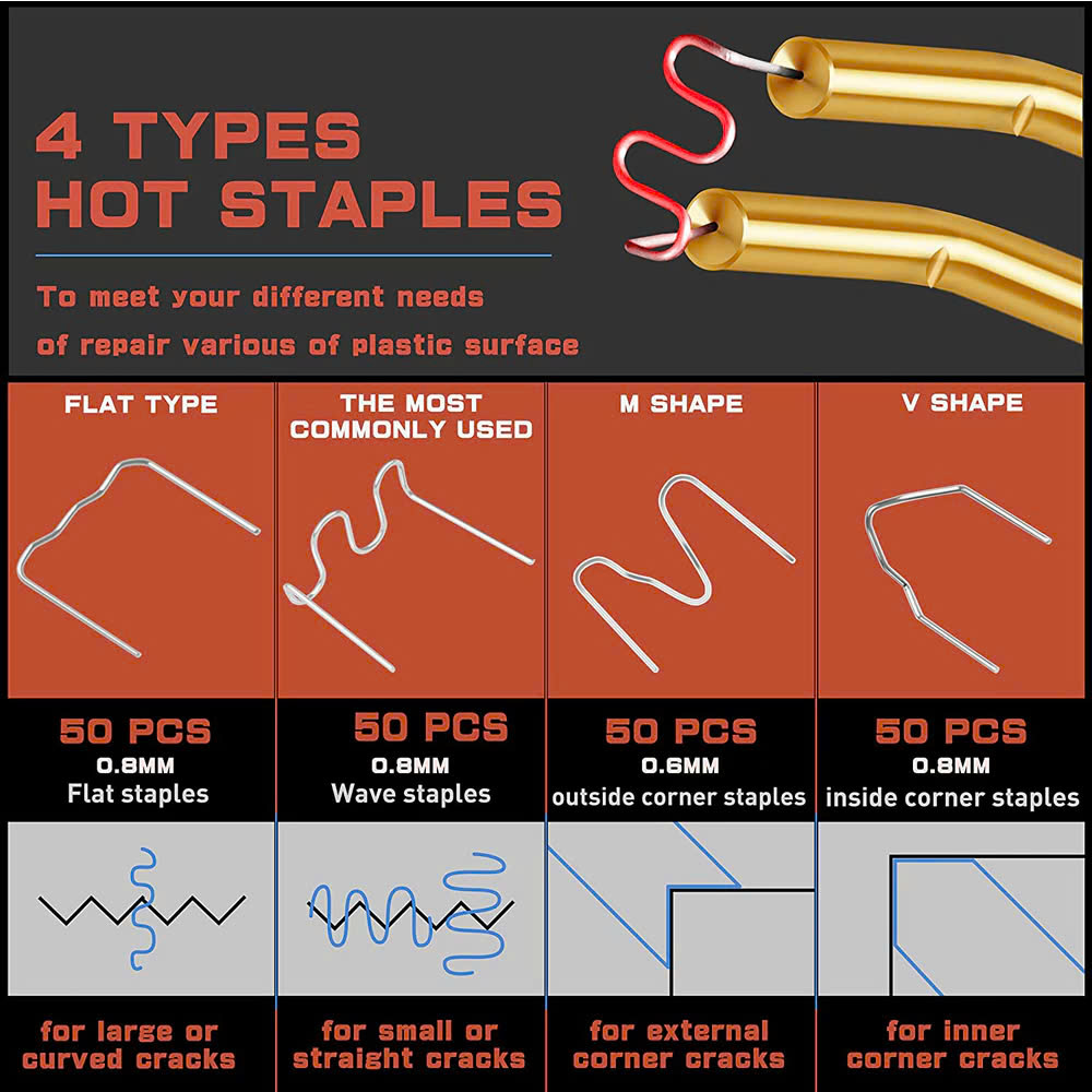 • Tích hợp dập ghim: Công nghệ dập ghim giúp bạn hàn lại các vết nứt, gãy, tạo ra sự liên kết chắc chắn mà không cần các công cụ chuyên dụng phức tạp.