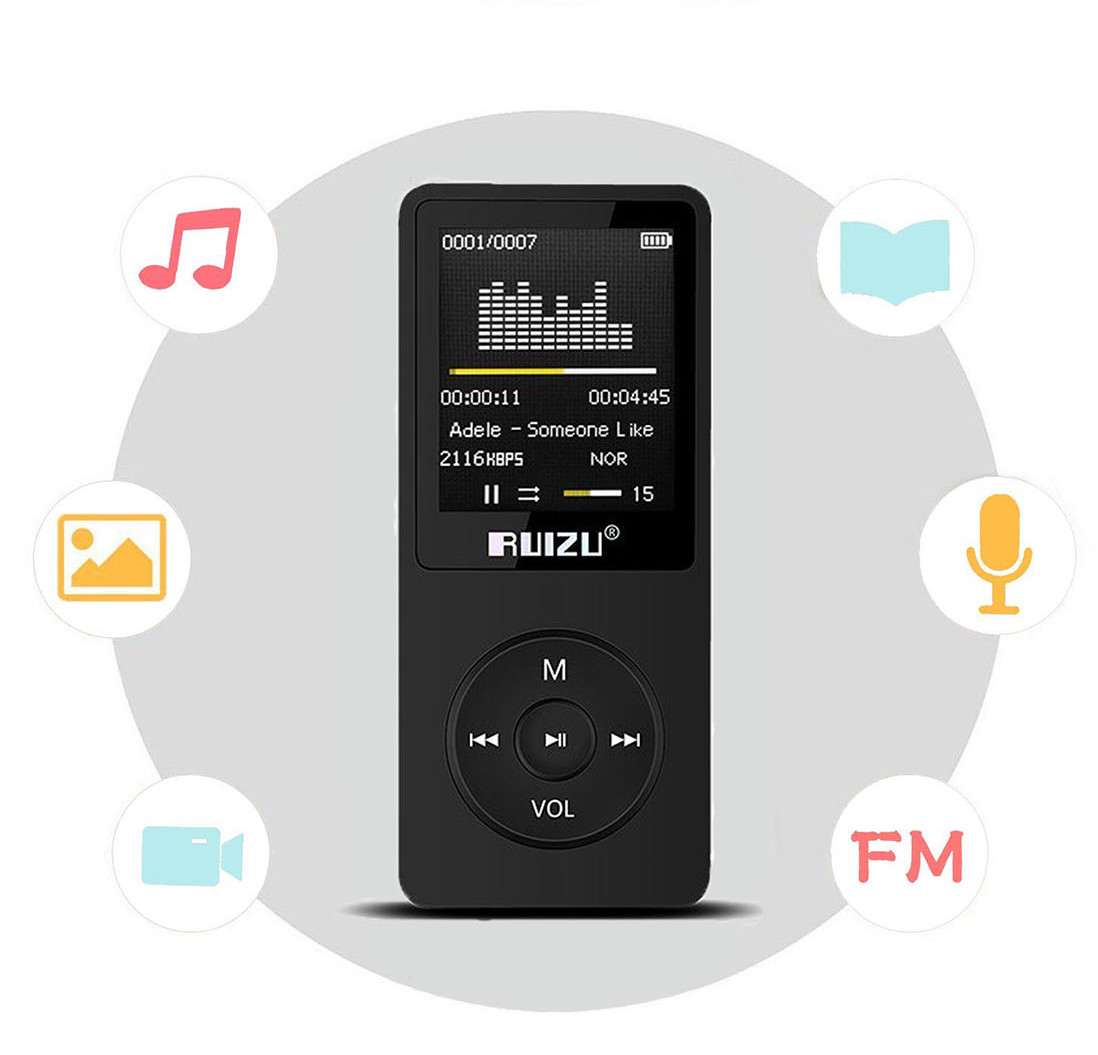 Máy Nghe Nhạc RUIZU D11 (8GB) bên cạnh chức năng nghe nhạc MP3, MP4, máy nghe nhạc còn là đài FM, máy ghi âm, máy đọc sách điện tử, trình xem ảnh. Ngoài ra, máy